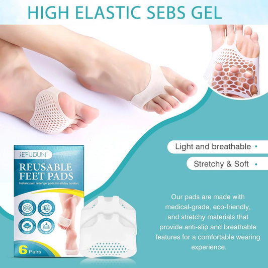 Sefudun Reusable Feet Pads 6 Pairs - Gel Pad Foot Cushions