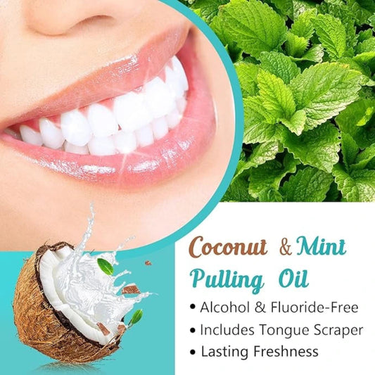 Coconut & Mint Pulling Oil Kit for Teeth & Gums Health with Tongue Scraper, Helps Freshen Breath