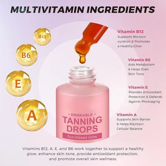 Tanning Drops Supplement with Beta-Carotene & Vitamins for Healthy Glow, Face & Body